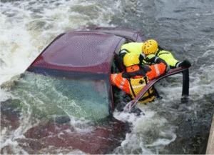 His radio crackled as he called it in, and within minutes the quiet riverside transformed into a frenzy of sirens, rescue boats, and orange vests. Paramedics moved with precision, while firefighters waded cautiously through the cold water toward the vehicle.
