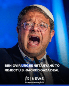 Israeli National Security Minister Itamar Ben-Gvir has called on Prime Minister Benjamin Netanyahu to reject the U.S.-backed ceasefire and hostage release deal concerning Gaza. Labeling the proposal a “surrender,” Ben-Gvir insists it would undermine Israel’s goal of fully defeating Hamas. He argues that agreeing to the deal would reward terrorism, weaken Israeli deterrence, and risk the resurgence of Hamas through humanitarian aid channels.