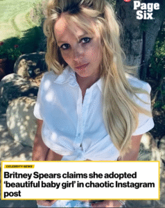 Britney Spears surprised her fans with a cryptic and chaotic Instagram post claiming she had adopted a “beautiful baby girl.” The pop icon shared a series of emotional and scattered messages, accompanied by photos that left many followers confused about the nature and truth of her announcement. In the post, Spears did not clarify whether the adoption was legal, symbolic, or metaphorical, prompting a wave of speculation online.