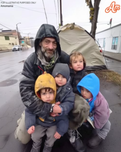 It was the middle of winter when Jason, a father of four, found himself struggling with the weight of a difficult life. He and his children were living in a tent in a park, their home a makeshift shelter that barely held back the biting cold. Every day was a battle—trying to find enough food, keeping the kids warm, and holding onto the small fragments of hope that he had left. The future seemed bleak, and Jason was doing everything he could just to survive.
