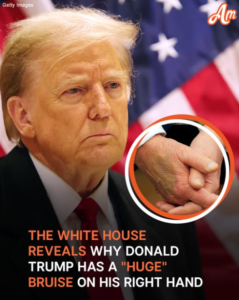 On February 24, 2025, during a high-profile meeting at the White House, Trump was seen with a dark bruise on his right hand. The discoloration appeared to be partially concealed with makeup. White House Press Secretary Karoline Leavitt attributed the bruise to Trump’s frequent handshaking, stating, “President Trump has bruises on his hand because he’s constantly working and shaking hands all day, every day.”