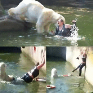 The woman screamed as the bear swiped at her, pulling her into the water. The crowd’s horror escalated. Children cried. Adults shouted helplessly. Zoo staff, alerted by panicked visitors, raced to the scene.