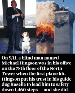 The escape of Michael Hingson and Roselle is more than just a survival story. It is a reminder of the power of trust, the resilience of the human spirit, and the extraordinary abilities of service animals. In a moment when the world seemed to be collapsing, one dog showed unwavering courage, and one man demonstrated the strength to trust completely. Together, they walked out of darkness into light, embodying hope amid tragedy.