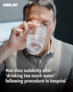 A tragic and unexpected incident unfolded when a man reportedly died suddenly after consuming excessive amounts of water following a medical procedure in the hospital. The shocking case has raised concerns about the dangers of overhydration, a condition known as water intoxication or hyponatremia, which can have fatal consequences.