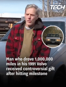 Man who drove 1,000,000 miles in his 1991 Volvo received controversial gift after hitting milestone