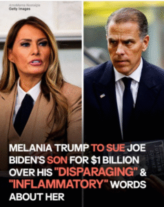 Melania Trump has reportedly taken an unprecedented step in a brewing political and personal clash by threatening to sue Hunter Biden for a staggering \$1 billion over what she describes as “defamatory and malicious claims.” The dispute, which has ignited both legal and political speculation, centers on remarks allegedly made by Hunter that Melania insists are not only false but damaging to her reputation, character, and family. According to sources close to the former First Lady, the matter has reached a point where legal intervention is no longer a possibility but an inevitability unless Hunter publicly retracts his statements.