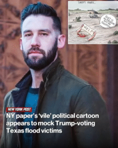 Meanwhile, in Texas, where many communities remain underwater and emergency crews continue rescue efforts, the cartoon feels like a cruel slap in the face. “People are hurting,” said a flood survivor in Kerr County. “We’ve lost family, homes, everything. To see someone in New York laugh at that—it’s sickening.”