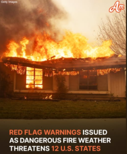 Red Flag Warnings have been issued across 12 U.S. states, signaling critical fire weather conditions that could lead to rapid wildfire spread. These warnings are primarily due to a combination of low relative humidity, strong winds, and dry fuels, creating an environment conducive to wildfires.