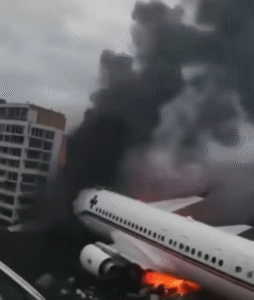 The aircraft took off at approximately 1:38 PM local time. Witnesses reported seeing the plane ascend briefly before losing altitude and crashing into a residential area near the airport. The impact caused a massive fireball, with thick black smoke billowing into the sky. The crash site was chaotic, with debris scattered across the area and emergency responders rushing to the scene.