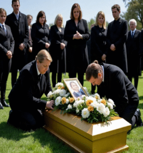 As the priest concluded prayers and the casket lowered into the ground, the husband stepped forward. His hands shook as he removed his hat, letting the rain soak his thinning hair. His voice cracked as he spoke, not to the mourners, but to the woman he loved.