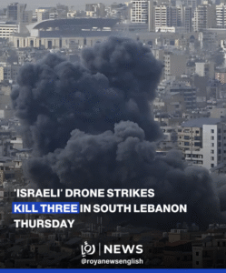 Three people were killed in Israeli drone strikes that targeted southern Lebanon on Thursday, according to local reports and security officials. The strikes reportedly hit the town of Khiam, near the border with Israel, and were said to have targeted a vehicle and a building used by Hezbollah operatives. The identities of the victims have not been publicly confirmed, but sources indicate they may be affiliated with the militant group.