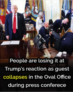Trump’s Reaction to Guest Collapsing in the Oval Office Stirs Social Media Backlash