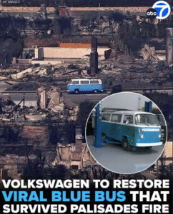 Volkswagen has announced plans to restore a beloved blue VW Bus that remarkably survived the devastating Palisades Fire in California. The van, which became a viral symbol of resilience and nostalgia after images of it emerged charred but intact amid a scorched landscape, has captured the hearts of VW fans and the public alike. Now, the iconic automaker is stepping in to bring it back to life.