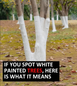 In forests, plantations, or urban settings, tree trunks may be painted white (or partly white) for easy identification. This can signify property boundaries, survey marks, or trees under observation or treatment. The paint acts as a visible marker without harming the tree. In landscaping, white paint can also help prevent accidents by making trees more visible along roadsides or trails, especially at night.