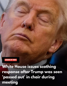 Washington, D.C. — A storm of political speculation swept through Washington today after footage surfaced allegedly showing former President Donald Trump slumped in a chair during a closed-door meeting at his Mar-a-Lago resort. The clip, which began circulating on social media late Tuesday night, quickly ignited debate over the former president’s health, fitness, and the credibility of his inner circle. Within hours, the White House issued what it called a “necessary and scathing response” to what it described as “reckless political theater.”